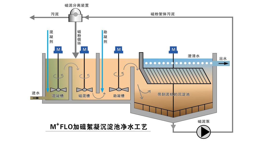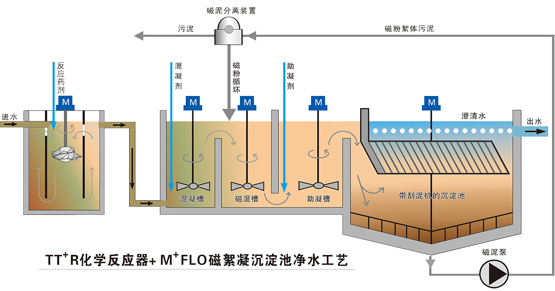 享有化學(xué)法+磁絮凝凈水系統(tǒng)相關(guān)的多項發(fā)明及實用新型專利,針對磁絮凝工況特點,優(yōu)化設(shè)計的升級版高效節(jié)能型磁砂回收系統(tǒng),并配裝旋流預(yù)回收器,磁粉回收率達99.9%。特別設(shè)計的磁絮凝專用攪拌機,SABRE/FRP高效&低剪切槳葉。M+FLO重載刮泥機,專利設(shè)計的PACIF ZABRA 底部防磨損軸承組件,確保長周期平穩(wěn)運轉(zhuǎn);磁砂含量在線監(jiān)測&智能補加系統(tǒng),與化學(xué)加藥聯(lián)動實現(xiàn)磁絮凝反應(yīng)系統(tǒng)的智能自控運行。掌握磁絮凝系統(tǒng)最優(yōu)化設(shè)計參數(shù),可節(jié)省土建工程量~30%。